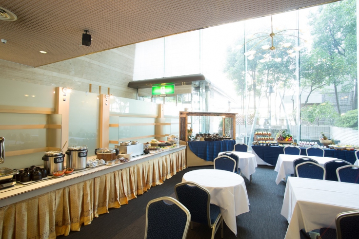 天井が高く、大きな窓から自然光が差し込む明るく開放的な朝食会場で、朝のひとときをお過ごしくださいませ。
